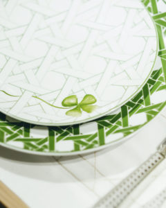 A chacun de ses défilés, dans les salons du 30, avenue Montaigne, Christian Dior installait ses invités sur d’élégantes chaises de style Napoléon III, dont l’assise était ornée de cannage, un code graphique devenu emblème iconique de la Maison. Réinterprété par Cordelia de Castellane dans différentes tailles et proportions surprenantes, ce symbole s’enrichit d’une nouvelle version. Sur des assiettes à dessert, il dialogue avec deux porte-bonheurs chers au cœur de Dior : le trèfle ainsi que l’abeille célébrant les petites mains virtuoses des ateliers que Christian Dior nommait ainsi. Au gré d’objets de décoration inédits, cannage en rotin et plexiglas se côtoient, composant un jeu de matières léger et délicat. Une évocation contemporaine et joyeuse de l’art d’offrir et de recevoir cher à Monsieur Dior.