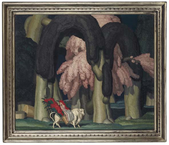 Jean Dupas (1882-1964) « L’Enlèvement d’Europe » 1928, paire de tableaux dans leurs cadre d’origine dessinés par l’artiste. Huile et encre sur carton, cadres en bois argenté à la feuille, 66 x 79 cm. Signée et datée en bas à droite du pendant droit (100.000-150.000 €. © Christie’s Limited 2014 Lire la suite