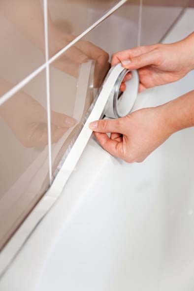 Collez la bande Stop bavures en angle droit au niveau du joint. Formé de deux rubans de masquage parallèles, elle protègera le mur et l’évier. Lire la suite