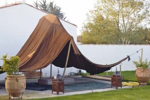 » L’Anse rouge » est la chambre qui est située dans le coin le plus végétal de Blanc Marine. En provenance directe de Marrakech, les meubles donnent à la pièce une ambiance très orientale que l’on retrouve dans le salon de la terrasse privative ou sous la pergola, entourée de glycines et de jasmins. Pergola qui abrite un jacuzzi avec une eau à 37° pour se délasser après les balades à vélo dans les marais. Enfin, face à la piscine, on découvre la suite » Les Dames » indépendante, avec son portail privatif donnant accès à un jardin de 300 m2. Légèrement à l’écart, elle est entourée de lauriers blancs et de mimosas, bordant une terrasse de 40 m2.