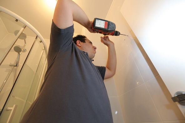 Fixez dans ces chevilles les embases fournies. Elles servent de support aux entretoises du radiateur sèche- serviettes. Lire la suite
