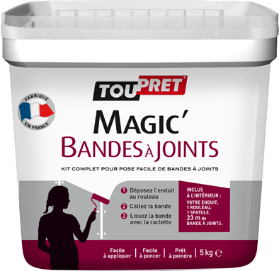 Toupret présente une solution prête à l’emploi, tout en un et à la portée de tous. Compatible avec tous les types de plaques (même hydro), le « kit magic’ bandes à joints » est une nouvelle solution complète pour une pose facile et rapide.
