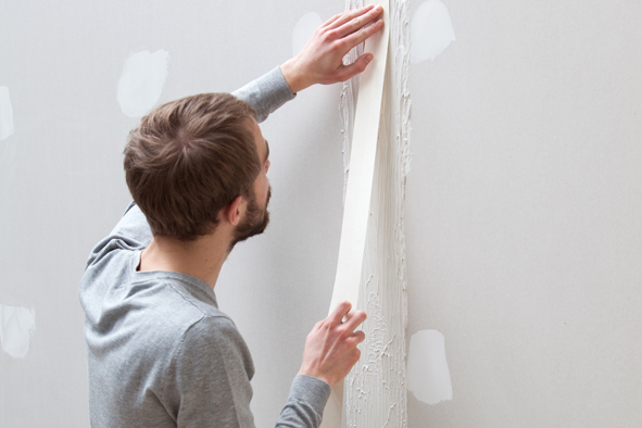La pose de bandes à joints entre deux plaques de plâtre est une étape indispensable. Elle permet de masquer l’espace entre deux plaques pour obtenir un mur lisse avant peinture.