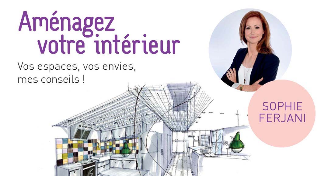 Aménagez votre intérieur : Vos espaces, vos envies, mes conseils ! par Sophie Ferjani, 170 pages (21.5 x 28 cm) à 25 € aux Éditions Eyrolles.