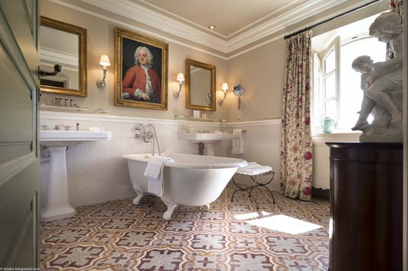 Ces mille trésors chinés auprès de brocanteurs et d’antiquaires sont le liant d’un havre unique au sein duquel le traditionnel côtoie l’historique dans un décor raffiné et subtil, recélant d’un luxueux confort et d’une technologie camouflée. Dans ce paradis romantique on est transporté par les connotations fantasques de ces pierres qui s’échelonnent à même les fortifications du XIIème siècle, et l’aura chaleureuse de cette demeure contemporaine de la forteresse qui fût remaniée à la Renaissance. Un voyage authentique dans le temps où le sublime existant est transcendé par l’émotion d’une essence et d’une transmission familiales. Dans ce château ancestral, cinq suites ont été rénovées dans l’esprit d’une symbolique historique, des alcôves anoblies dénommées « Baron » « Vicomte » en passant par « Comtesse », « Marquise » et « Duchesse »…