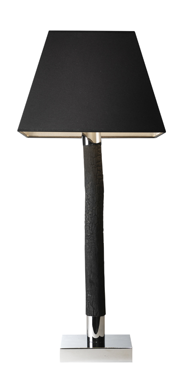 Lampe HEKLA, bois brûlé et acier chromé, 460 € (Bleu Nature)