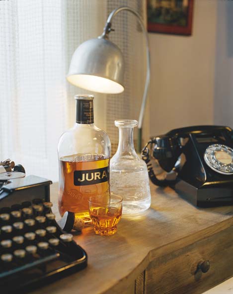 Le téléphone, en état de marche, la lampe et la machine à écrire datent des années 40. L’incontournable bouteille de Jura 10 ans d’âge, est ici source d’inspiration à l’écriture !Lire la suite