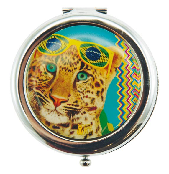 Miroir de poche en métal, Ø 6,5 x 1 cm (9 €).