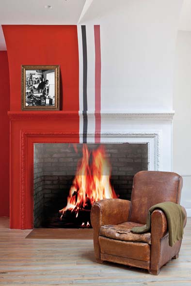 Entièrement créée par Carlos. Encadrement fait d’ornements en stuc récupérés. Les bandes de couleurs symbolisent la transition entre le salon et la cuisine. © A-C Scoffoni.Lire la suite