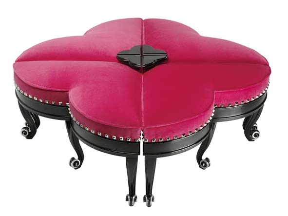 Atout-coeur par Chantal Thomass, structure en hêtre teinté et vernis noir, filets argents, garniture semi-traditionnelle, finition à clous carrés nickelés, velours opéra (pierre Frey), d 120 x h 43 cm, prix sur demande, TaillardatLire la suite