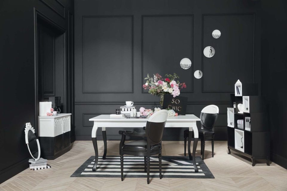 Fermez les yeux… Rouvrez-les : vous êtes dans l’appartement de Chantal Thomass. Un esprit chic, glam et parisien. Des moulures raffinées, une note d’impertinence autour du black and white, une touche de rose, la délicatesse du velours et le soyeux du satin… l’ambiance est résolument stylée et élégante. Les meubles s’illuminent au gré des objets de décoration qui leur sont associés. Les détails créent la tendance : ici un pied de guéridon au joli galbe, là un stuc finement travaillé, l’audace du bicolore sur les meubles et les miroirs… Grâce à la célèbre créatrice, la mode et la déco ont enfin trouvé leur harmonie ! La collection regroupe une cinquantaine de pièces signées «Chantal Thomass pour Maisons du Monde» et sera en vente à partir du 10 septembre prochain dans les points de vente Maisons du Monde en Europe et sur www.maisonsdumonde.com