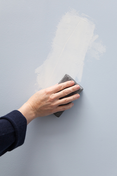 8- Poncez légèrement par mouvements circulaires, lorsque l’enduit est sec.