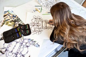Marion Thomas, Ecole Françoise Conte (France). Présélectionnée pour le Bemz People’s choice du Bemz Design Award 2014. Motif « Etrange Parure Jet black« .