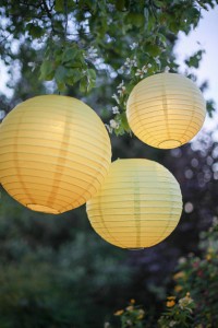 Grâce à de petites ampoules Led ces boules japonaises s’illuminent comme par magie et permettent de mettre en place une décoration féérique en quelques instants. Le kit est composé de trois boules de diamètre différent (25, 30 et 35 cm), ce qui permet de jouer avec les volumes. Sept coloris sont disponibles, dont le blanc pour un mariage par exemple. (19,90 €).