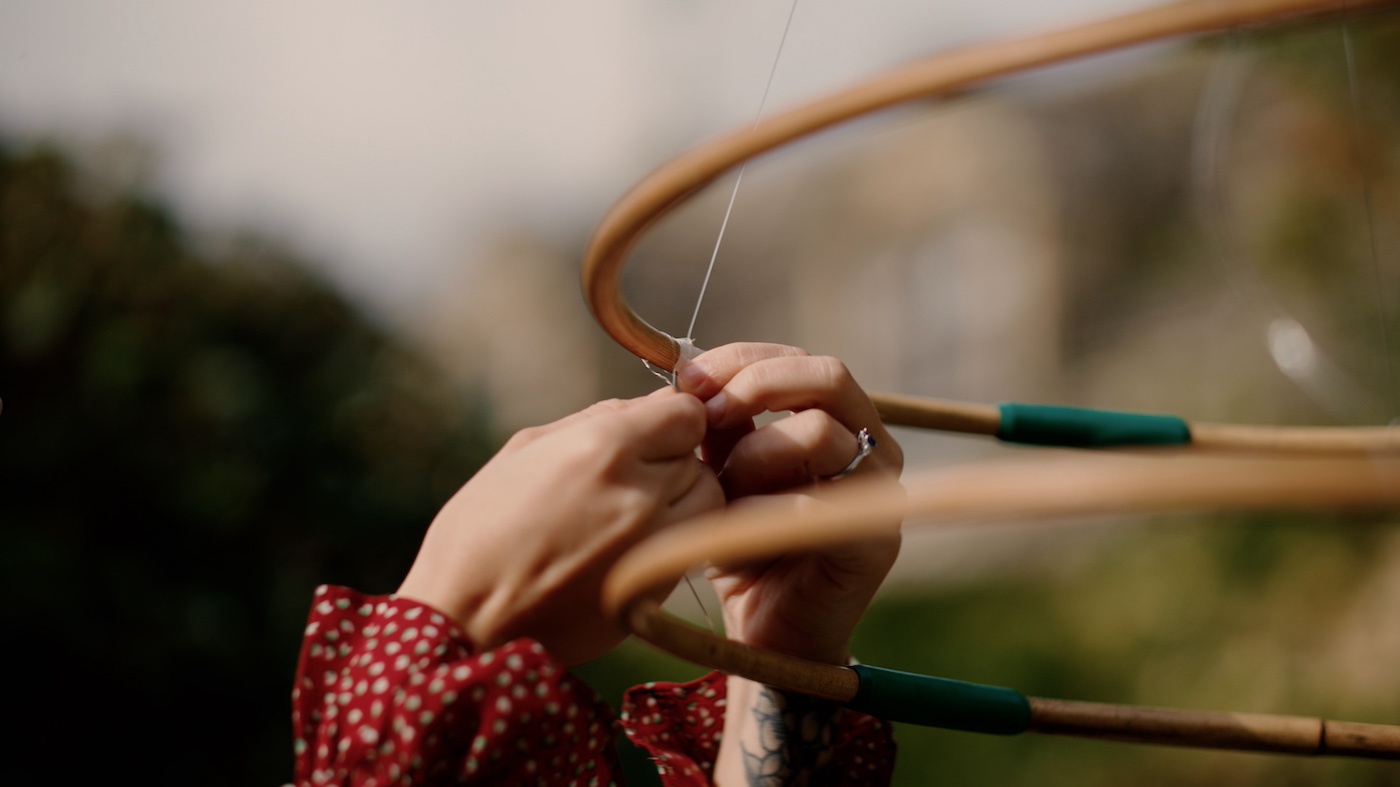 Pour fabriquer ce lustre DIY, vous aurez besoin de deux cerceaux en bambou naturels qui font sensiblement la même taille. À l’aide de fil de pêche, attachez quatre longueurs de fil autour de l’un des cerceaux. Posez votre cerceau, prenez les quatre extrémités des fils et nouez-les ensemble pour constituer le sommet du lustre. Pour faciliter la fixation du second cerceau, nous vous conseillons à ce stade de suspendre votre premier cerceau à un crochet ou une poutre avant de poursuivre. Lire la suite