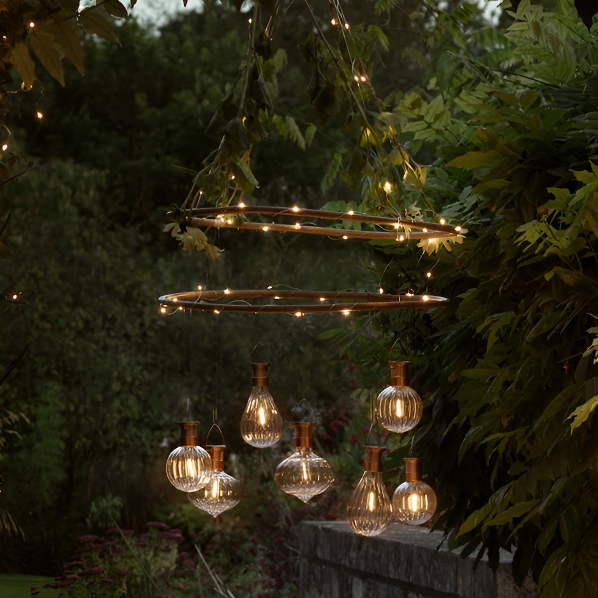 Lorsque votre lustre est terminé, à vous de décider où il fera le plus sensation. Que vous le suspendiez à une pergola, une poutre ou même la branche d’un arbre au-dessus d’une table de jardin, veillez à bien l’accrocher grâce au nœud au sommet. A la tombee de la nuit, admirez lorsque votre suspension s’illumine en toute splendeur pour illuminer vos diners a la belle étoile. Lire la suite