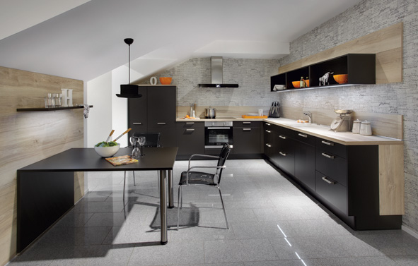Le modèle Diana remet le noir au goût du jour avec sobriété et élégance : 3 990 € avec électroménager Beko inclus (pack 1290 € : four, plaques, hotte, lave-vaisselle, frigo).