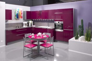 La Girly est idéale pour celles et ceux qui aiment les cuisines de caractère avec son coloris Aubergine : 5 490 € avec électroménager Beko inclus (pack 1290€ : four, plaques, hotte, lave-vaisselle, frigo).