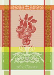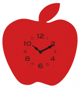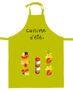 Horloge “Pomme” en aluminium. Dimensions : L 25,7 x H 28,2 cm, 19,90 € (www.incidence.fr)Set de couteaux primeur avec couteau d’office, santoku, couteau à pain, couteau de chef, 24,90 € (www.albertdethiers.fr).Tablier « Cuisine d’été » en coton, 20 € (www.incidence-deco.fr)Torchon « Les tomates rouges ». Dimensions : L 56 x l 77 cm, 14,40 € (www.garnier-thiebaut.fr).Panier à fruits « Siléa » en métal. Dimensions : L 30 x H 41 x l 23 cm, 20,50 € (www.delamaison.fr).Assiettes Fruity porcelaine. Assiette plate Ø 26,5 cm : 1,99 €. Assiette à dessert Ø 19 cm : 1,50 € (www.conforama.fr).