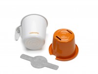 Le « Pot à Herbes » est une adaptation d’un procédé utilisé par les jardiniers professionnels qui consiste à utiliser l’hydratation par capillarité pour favoriser l’alimentation des plantes en eau. Il est constitué de trois parties : un récipient d’eau et un cache-pot dans lequel on vient placer une racine hydratante en viscose. L’eau est versée dans le récipient d’eau et le cache-pot est ensuite placé dans celui-ci, la racine hydratante en viscose se retrouvant ainsi dans l’eau. Il suffit alors de placer la plante aromatique de son choix et de mettre l’ensemble dans un endroit bien éclairé de la cuisine, à l’abri des courants d’air. Il convient ensuite de continuer à remplir le réservoir par l’ouverture prévue à cet effet afin de maintenir une irrigation régulière de la racine hydratante en viscose et, par conséquent, de la plante