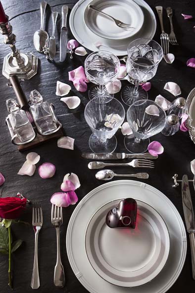 « Pour donner une touche raffinée à une table de Saint Valentin rien de plus simple » explique Corinne Javaloyès, propriétaire de l’Argenterie d’Antan à Paris. « L’astuce est de suivre la tendance du dépareillé pour une table sophistiquée et originale et qui ose le mélange des styles. Le style Louis XV, très travaillé, se marie à merveille au style Louis XIV, épuré. Pour apporter une touche de fantaisie le ruban croisé et le style perle Louis XVI s’harmonisent au style Napoléon III. Il est également possible d’apporter une touche de modernité avec la tendance Art Déco » (www.argenterie-dantan.com).