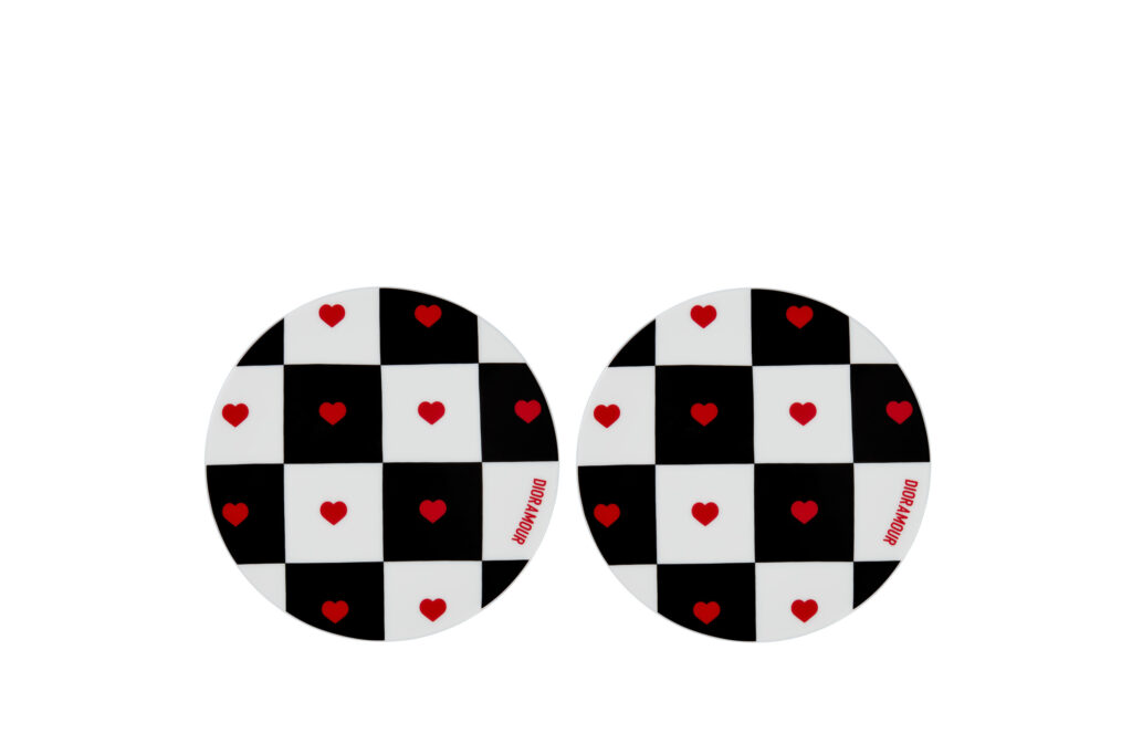 Amour, Scène d’amour, Fête d’amour… Les noms des silhouettes haute couture de Christian Dior n’ont cessé de célébrer la beauté de ce sentiment passionné qui inspire la Maison depuis toujours. Aujourd’hui, le motif réalisé par Maria Grazia Chiuri – pour la capsule prêt-à-porter Dioramour – se déploie sur une série inédite Dior Maison : un damier et des cœurs rouges ponctuent ainsi des assiettes, des mugs et des bougies en porcelaine de Limoges ou encore des carnets habillés d’une délicate couverture en tissu. A la rédaction, on adore ! (www.dior.com).