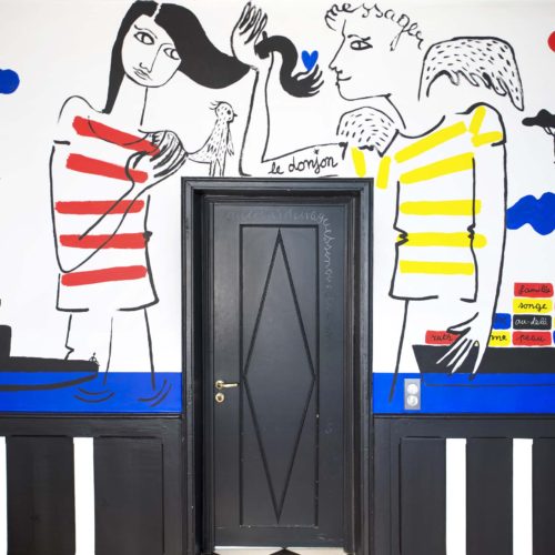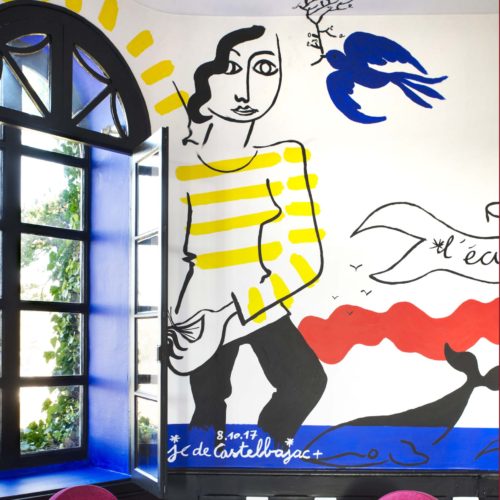Omar Abodib, propriétaire de l’hôtel Le Domaine de Saint Clair et de son restaurant gastronomique Le Donjon, est un enfant de la région. Jean-Charles de Castelbajac aussi, car il a été pensionnaire en Normandie. De leur rencontre et de leur attachement fort à un territoire unique, est né une fresque sur mesure qui vient tatouer la salle principale du restaurant Le Donjon.