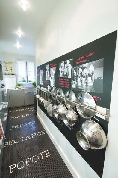 Le cuisine fonctionnelle a été conçue par Bultaup. Le côté chaleureux de cette pièce est engendré par l’immense magnet représentant les membres de la famille. Sol en mosaïque Bisazza. Lire la suite