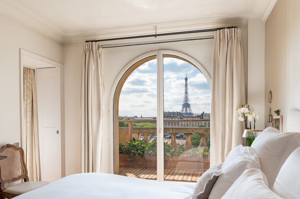 Face à la Tour Eiffel, un grand espace de réception accueille les tablées estivales. Plus loin, un petit salon intimiste, une allée de buis sculptés et une cuisine extérieure dissimulée derrière les feuillages composent une mosaïque de lieux propices à la convivialité ou au recueillement. Le tout, à l’abri des regards, dans un calme rare pour Paris. Le bien est complété par un studio indépendant de 32 m² donnant sur cour, deux places de parking — dont l’une équipée d’une borne de recharge électrique — ainsi qu’une cave. Un lieu conçu pour recevoir, habiter, contempler. Vente aux enchères le 10 juillet 2025 à 17h sur drouot.immo. Prix de départ : 7 500 000 €
