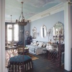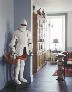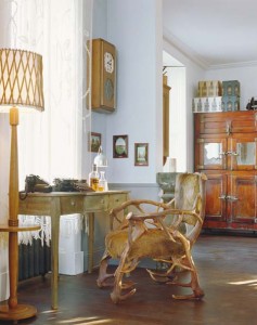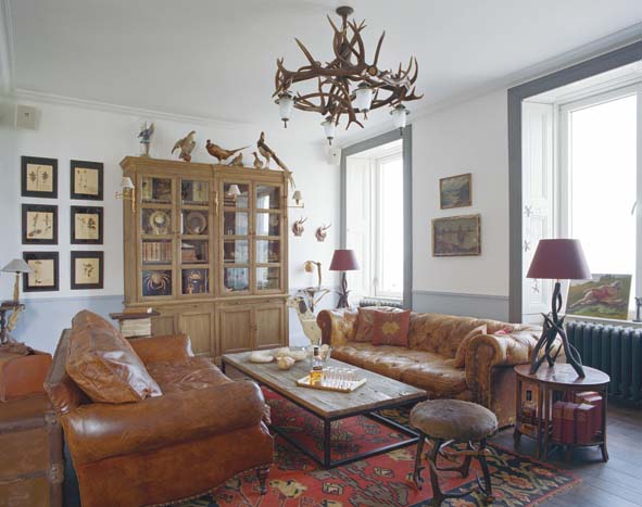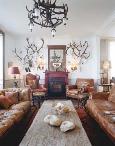 Mais, quand on regarde cet endroit de plus près, on constate qu’il est truffé d’objets très insolites : réfrigérateur émanant d’un café brésilien, collection de mâchoires de requins, lampes en pied de cerf, lézards volants, armure laquée blanche, draps anciens brodés, lustre XIXème rempli de coquillages, tambour transformé en table basse… sont autant d’irrévérences au chaleureux art de vivre à l’écossaise. Pour retranscrire son interprétation de l’esprit Jura, Bambi a sillonné pendant des mois tous les marchés aux puces du nord de la France et de la Belgique, assisté à toutes les ventes aux enchères d’Espagne, d’Italie et de Grande-Bretagne à la recherche de pièces éclectiques et vintage à mixer à des objets plus contemporains.