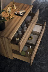 Et pour inscrire encore mieux Lignum dans la niche des meubles d’exception, Sanijura le décline désormais dans une prodigieuse version en noyer massif, y compris les éléments annexes, limitée à 500 exemplaires numérotés, en parfaite harmonie avec les exigences les plus exclusives des esthètes du bain…