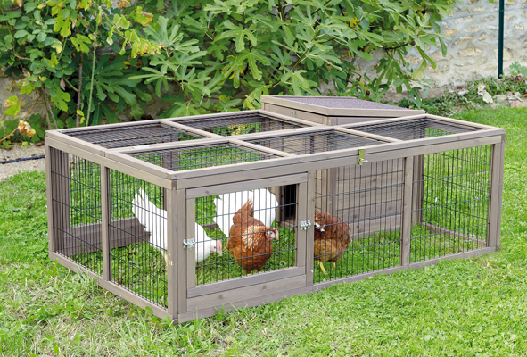 Enclos “Confort” avec grillage et trappes d’accès sur le dessus et les côtés. Système “anti prédateur.” L 160 x l 145 cm. 145 € (Truffaut). Lire la suite