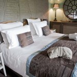 L’ensemble de la bâtisse se fait le décor intemporel et le théâtre quotidien d’une vie de châtelain ! Sur cinq étages, le château se fond dans un labyrinthe de couloirs, escaliers, terrasses et décrochements permettant l’accès aux chambres aux noms et styles différents, aussi luxueuses qu’atypiques, portant les souvenirs de huit siècles d’histoire. Dans la chambre baptisée « La Tour » on trouve un plafond escamotable permettant d’entrevoir la charpente du sommet de la tour, alors que la chambre de « l’Évêque » dispose d’un magnifique parquet classé orné d’un cadran solaire zodiacal en bronze. Le style Art Déco des années 1930 a également été choisi pour l’aménagement des pièces plus petites.