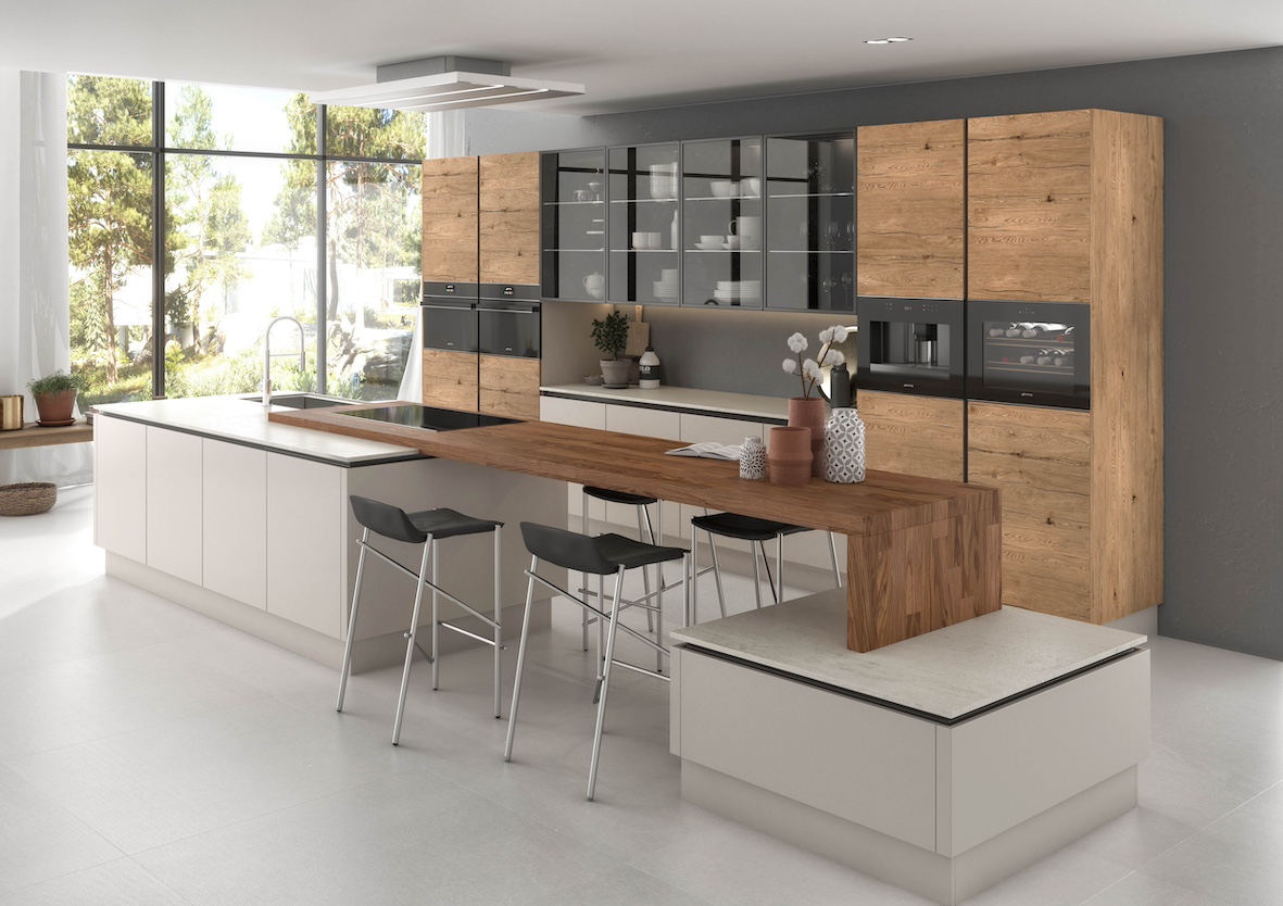 Cuisine Saint-Germain : Façades mélaminées avec chants PVC, porte intérieure assortie à la façade, épaisseur 19mm. Disponible en 3 coloris. Prix selon implantation type à partir de 7 042 € dont 31,50 € d’éco-participation (incluant Electrio – hors autres électroménagers, évier, robinetterie, livraison et pose).Lire la suite