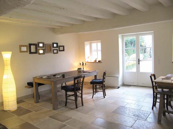 Dans la salle à manger grande table (Blanc d’Ivoire) et lampe sur pied (Ikea). Lire la suite