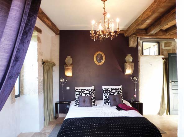 Le lustre en verre coloré et bronze des années 30 a été acheté dans un brocante. Le cadre bois doré et verre bombé date de la fin du XIXème siècle provient de la famille. Les deux vases en pâte de verre du début XIXème ont été chinés. Literie et coussins (Ikea). Les deux tables en bois laqué noir datent des années 80, elles ont été chinées sur un vide-grenier. Sol en travertin (Ekolux) Lire la suite
