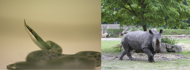 L’Arche des petites bêtes accueille de son côté une femelle serpent rhinocéros (Rhynchophis boulengeri). Cette couleuvre arboricole fréquente les forêts humides du Viêtnam et de Chine. Elle est facilement reconnaissable du fait de son appendice nasal en forme de corne !