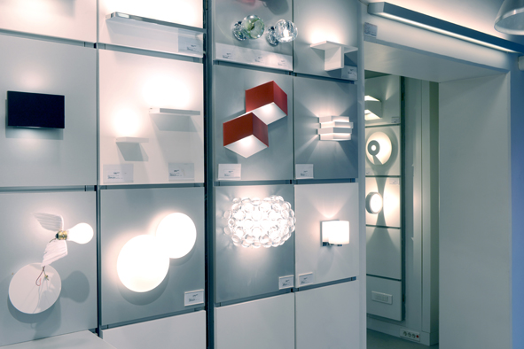 Les 300 m2 du magasin regroupent différents univers qui en font toute la singularité : suspensions hors normes, systèmes dédiés aux architectes, éclairages LED et techniques, salle de bains, outdoor.