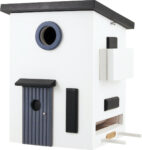 Conçus en collaboration avec des ornithologues, les cottages miniatures Multiholk font office de nichoirs au printemps et se transforment l’hiver en mangeoires, en un clin d’œil pour accueillir tous les oiseaux du jardin ! La collection est réalisée en mélèze massif traité avec des peintures écologiques faites pour résister aux intempéries. Dimensions : 18 x19 x 24 cm. Prix : 59,50 € (www.wildlifegarden.fr).