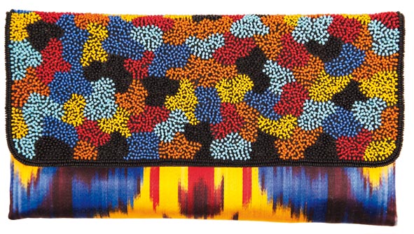 Pochette Kokand en soie brodée et perles (130 €).