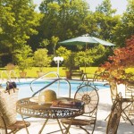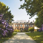 Au détour d’une route, à la sortie de Cambremer dans le Calvados, s’ouvre une large allée encadrée d’arbres majestueux : érables, châtaigniers, séquoia, tulipiers de Virginie, qui ont été plantées entre 1850 et 1910. Les chevaux, en liberté dans la prairie bordant l’allée, vous accompagnent vers le Château bâti en longueur et peu profond. A droite de la bâtisse, on devine la présence d’une piscine entourée d’une terrasse fleurie. A gauche, le Manoir XVIIIème discret prolonge le château et s’ouvre sur un jardin ombragé agrémenté d’un salon accueillant en fer forgé. On imagine sans peine les séjours de Proust, alors en cure à Cabourg, dans ce décor naturel raffiné, enclave de paix propre à l’inspiration.