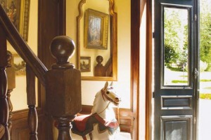 L’impression imposante de l’architecture 1er Empire s’efface très vite dès qu’on franchit le seuil. En effet, on se retrouve immédiatement enveloppé dans une atmosphère chaleureuse aux volumes accueillants. L’entrée feutrée et rassurante où règne le bois sombre, est rapidement éclairée par l’arrivée dans une grande salle à manger baignée de lumière par ses baies ouvrant sur le jardin face au parc et au vieux pressoir du XVIIIème siècle.