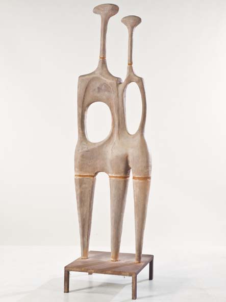 Georges Jouve (1910-1964) « Le Couple », pièce unique, 1960. Groupe en terre cuite et engobe la base en métal. Hauteur : 226 cm, base : 59,5 x 53,5 cm. Signé Jouve avec le sigle alpha de l’artiste en bas d’une jambe (150.000-200.000 €). © Christie’s Limited 2014 Lire la suite