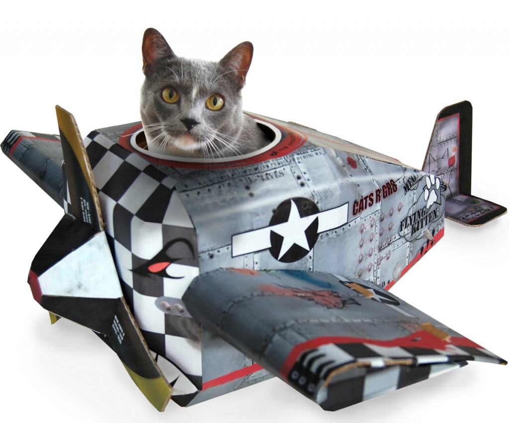 Les chats adorent jouer dans les cartons et les boîtes pour y dormir ou juste pour s’éclater. Ils vont adorer ces nouvelles cachettes en carton très simples à assembler. Ces maisons originales éveillent leur curiosité et développent leur plaisir du jeu. Désormais, votre petit compagnon pourra miauler de plaisir au volant de sa Cadillac rose ou se prendre pour l’As des as aux commandes de son petit avion ! Dimensions : env. 55 x 44 x 30 cm. A partir de 17,95 €.