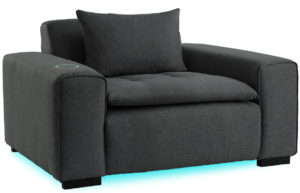 Imaginé par Guillaume Lachenal, le fondateur de Miliboo, et développé par une équipe d’ingénieurs en interne, le canapé connecté est fabriqué et assemblé en France. Pensé comme un home cinéma 4D, il fait vivre pour la première fois une expérience sensorielle totale et unique. L’image 3D crève l’écran et simultanément le son secoue le spectateur qui vit une expérience totalement immersive depuis chez lui. Celle-ci est possible grâce à différents systèmes et éléments tels que le système de vibration interactif de l’assise, un subwoofer de 600 watts, 2 haut-parleurs de 50 watts RMS stéréo intégrés, le protocole Bluetooth 4.0 et un amplificateur de son. Installé à la base du canapé, l’éclairage LED est réglable en intensité et en couleur pour changer d’ambiance selon son humeur ou ses envies.