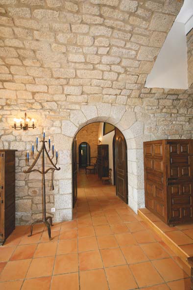 L’architecture intérieure fait preuve d’élégance. Murs en granit et portes voûtées. A gauche, chandelier en fer forgé XIXème.Lire la suite