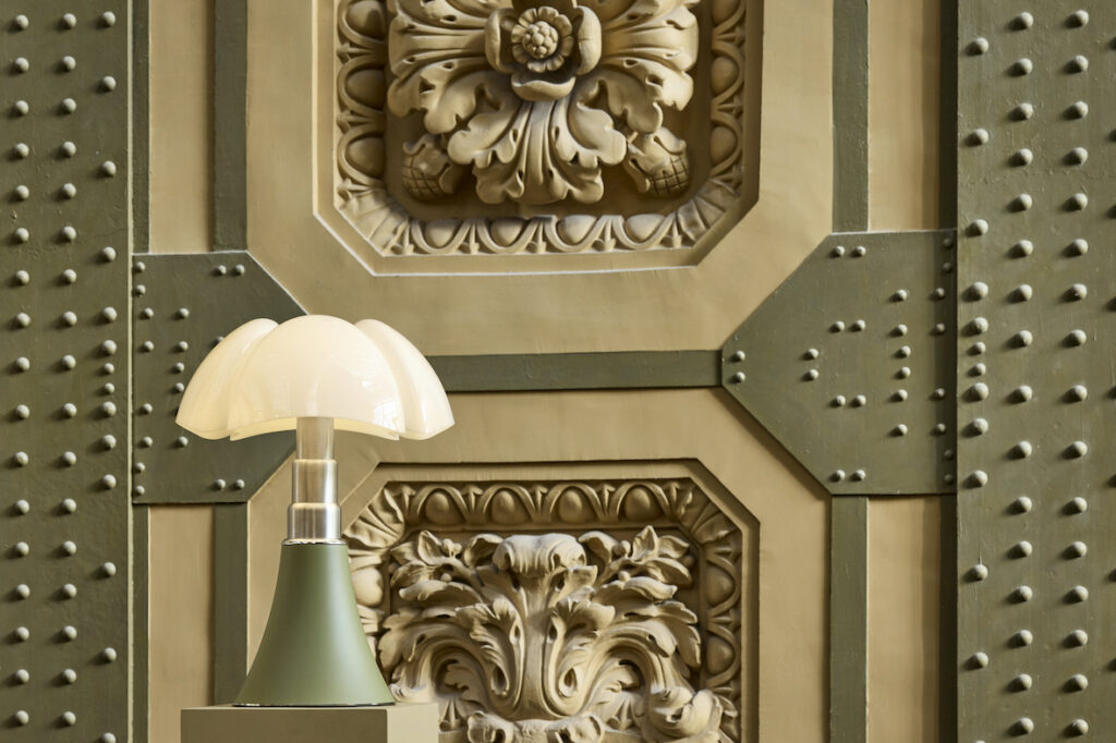 Vingt ans avant cette mission, en 1965, Gae Aulenti dessinait pour le showroom Olivetti à Paris la lampe Pipistrello, éditée par Martinelli Luce, appelée à devenir une icône du design italien. Innovante tant par sa conception que par ses matériaux, elle a nécessité un développement technique complexe, notamment en raison de son mécanisme télescopique et de l’usage pionnier du méthacrylate. D’abord jugée trop avant-gardiste, elle a mis quelques années à s’imposer, avant de devenir l’un des modèles les plus emblématiques de la marque.