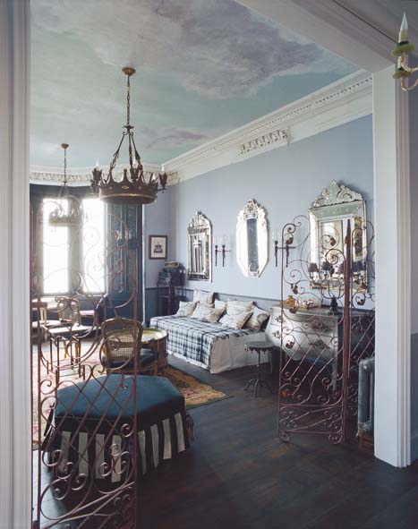 Ici, les murs ont été peints au chiffon dans trois tonalités de gris. Le lit est recouvert de coussins imprimés de notes de musique et d’un plaid tissé main par un artisan de l’île voisine d’Islay qui réalise des tweed pour la maison Chanel. Lire la suite