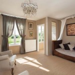 Dans ce décor de rêve, la propriété apparaît sobrement coiffée d’ardoise, avec ses petites briques rouges et ses pans de bois à l’orée des forêts. De prime abord, elle vous invite à courtiser le bonheur ! Pousser la porte de cette maison de maître du XIXème siècle flanquée d’une longère aux colombages d’époque, c’est immédiatement entrer dans un univers artistique teinté d’un charme indéfinissable ! Une symphonie de couleurs, de matières, de mobiliers chinés et détournés de leur affectation d’origine, vous captive dès votre arrivée. L’œil circule au rez-de-chaussée dans une succession de pièces aux teintes murales veloutées, se laisse surprendre par l’audace de ce violine qui chante sur ces fauteuils tout droit venus de l’Opéra, prend plaisir à se poser sur les rideaux de taffetas, les voilages en lin, s’amuse de cette collection de vases Art Nouveau et de ces styles Empire, Louis XVI, et contemporain qui cohabitent avec brio, s’attarde sur l’originalité des portes de la bibliothèque, ou sur cette insolite banque de commerce dès l’entrée. La pupille s’anime en découvrant une succession de pièces où les œuvres contemporaines comme les magnifiques toiles de Maryline Tanguy le Gac tutoient les tableaux aux charmes d’une toute autre époque. Mais les reines de cette décoration singulière, ce sont tous ces meubles et bibelots d’antan, chinés avec soin chez les antiquaires et dans les brocantes de Normandie, qui s’inversent, s’unissent, se segmentent, pour incarner une autre vie : têtes de lit, lampes, et miroirs rivalisent de prouesses créatives ! « La plupart des objets ont été chinés à l’étranger lors de nos différents périples à travers l’Europe et le Monde » explique Patrick Kuchly. La quiétude se poursuit dans le jardin paysager et le verger, apprivoisés sur deux hectares de nature. Cette ravissante demeure allonge ses terrasses bordées d’hortensias, de roses anciennes, ou de flocks qui s’épanouissent benoîtement au soleil levant. Le romantisme subtil d’une atmosphère sous l’emprise de la grâce, et le calme profond vous attend, pour satisfaire vos envies de farniente, d’écriture, ou de lecture.