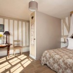 Les salles de bains affichent des personnalités uniques. Les époques se chevauchent mais s’affirment par des notes contemporaines pour se sentir à l’aise : vasque à l’ancienne ou design, miroir en bois doré et baignoire d’angle, carrelage immaculé ou colombages… Toutes bénéficient de la lumière naturelle. Cette demeure dispose aussi de deux logis aménagés comme des maisons de campagne et révélant une identité rustique marquée. On y découvre des sols en tommettes du XVIIIème siècle découvertes dans le jardin lors de la restauration de la longère, des murs en petites briques et des colombages actualisés par des teintes pastel.